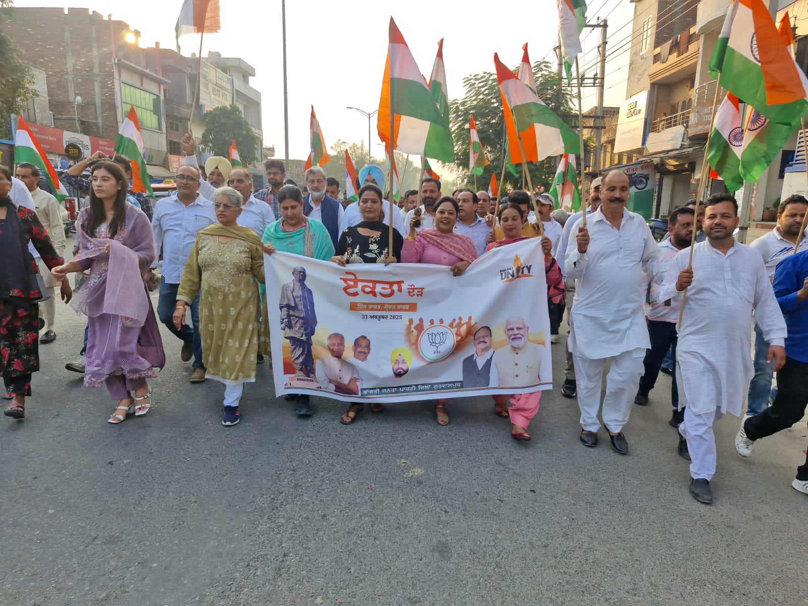 आज लोकसभा प्रभारी एवं पूर्व डिप्टी स्पीकर श्री दिनेश सिंह बब्बू जी की विशेष उपस्थिति में लौह पुरुष भारत रत्न सरदार वल्लभभाई पटेल जी की 150वीं जयंती के अवसर पर गुरदासपुर में एकता यात्रा निकाली गई। इस यात्रा का मुख्य उद्देश्य देश की एकता और अखंडता को बनाए रखना है। इस यात्रा में मंडला अध्यक्ष एवं जिला पदाधिकारी तथा बड़ी संख्या में कार्यकर्ता एवं समर्थक उपस्थित थे। इस अवसर पर कादियां से कुलविंदर कौर गुराया जी विशेष रूप से उपस्थित रहीं। पत्रकारों से बातचीत करते हुए उन्होंने कहा कि हम सभी को उनके दिखाए पदचिन्हों पर चलना चाहिए।
